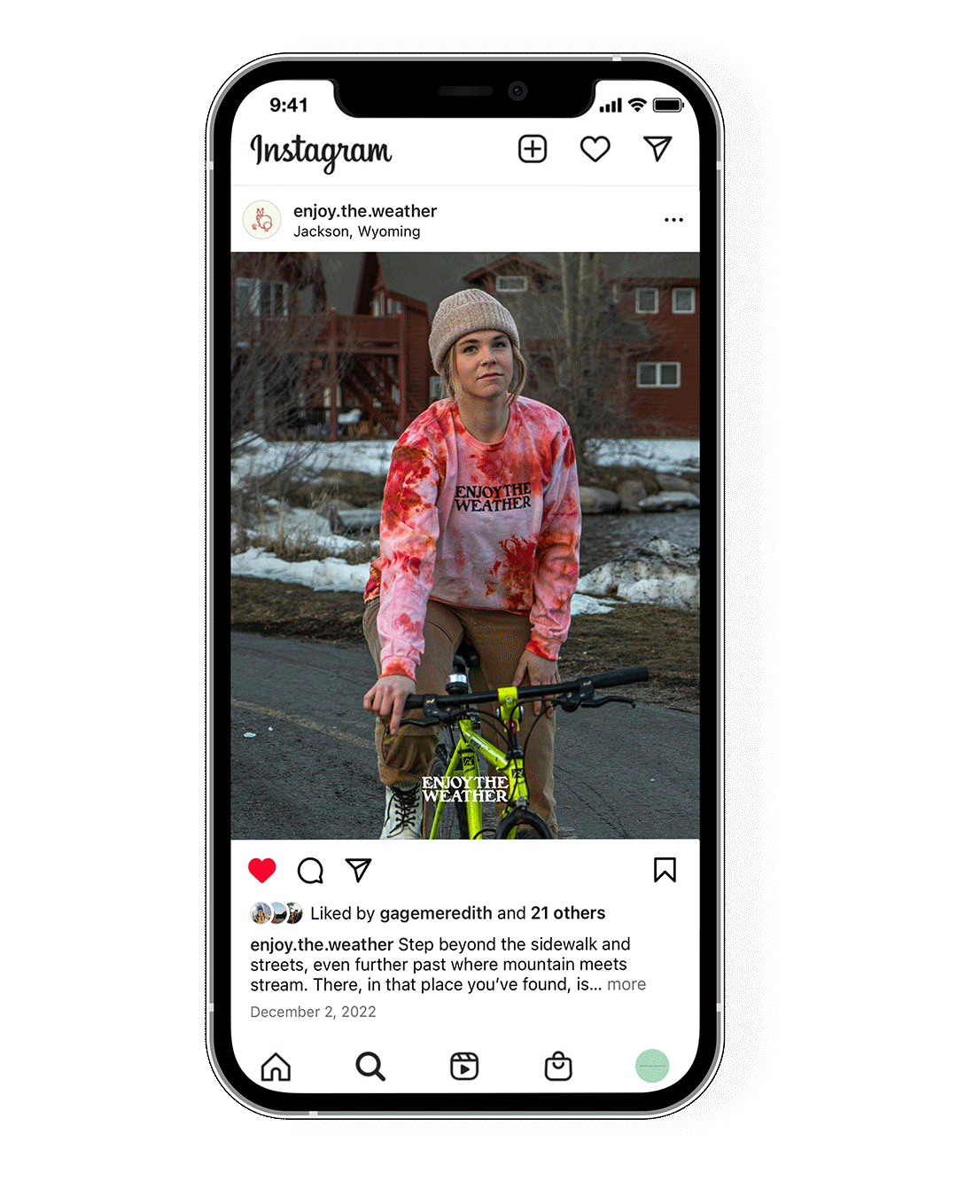 "Enjoy the Weather" is more than just a clothing brand; it's a lifestyle that encourages people to explore the beauty of nature and the world around us. It's my hope that my designs inspire others to get outside and enjoy the weather while wearing clothes that make them feel confident, comfortable, and stylish.